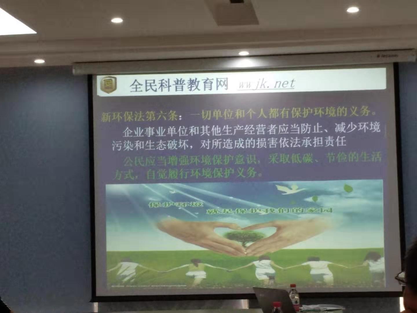 近日由全民科普教育網的老師免費為我們企業員工上了一堂生動的環境知識課程,課堂上老師用貼近生活的案例給我們員工講解了關于環境保護的很多知識。環保應從企業做起,從我們每個人做起,注意保護好身邊的生態環境